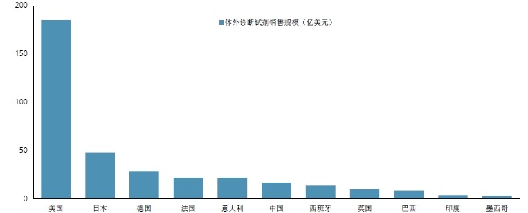 美国是最大的IVD市场占据全球47%的市场份额。欧洲占据了31%的IVD市场份额,其中德国占据欧洲市场的23.24%,法国占据欧洲市场的16.89%,意大利欧洲市场的16.41%。在亚洲,日本是最大的球速(中国)市场。球速(中国)的市场规模与医疗水平的发展状态具有相关性。