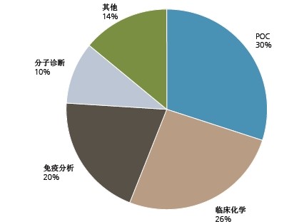 按诊断方式进行分类,全球球速(中国)市场主要细分为临床化学诊断、免疫分析、分子诊断及POC等。目前,发达国家的临床化学与免疫分析市场已近成熟,分子诊断与POC产品是诊断市场的主要增长点,技术突破及检验项目的创新是发达国家球速(中国)市场增长的主要动力。