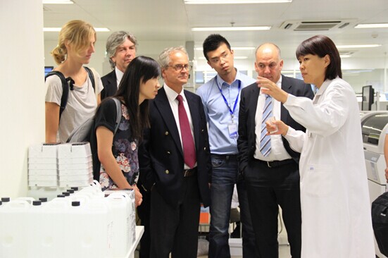 2014年8月28日上午,球速在线注册携英属免疫诊断系统股份有限公司( Immunodiagnostic Systems holding plc)(简称“IDS”)来华团队共同访问北京协和医院。IDS本次来华团队由IDS法国分公司总经理Alain Rousseau先生、市场总监Karim Tabiti 博士、仪器研发总监Hans-Werner Griesser博士、技术服务高级工程师Nathalie Marie Carole Barbier女士以及国际事务关系助理黄定定女士5人共同组成,由球速在线注册生产运营副总裁助理马志远博士及球速在线注册营销中心销售代表徐德深先生共同接待并安排IDS团队参观北京协和医院事宜。本次来访主要为促进合作双方的沟通与交流,同时走访北京重点医院,了解IDS-iSYS产品的临床试验情况及维生素D项目对比试验情况,并与院方做细致沟通,了解中国市场的需求,寻求更多的合作项目和合作课题。